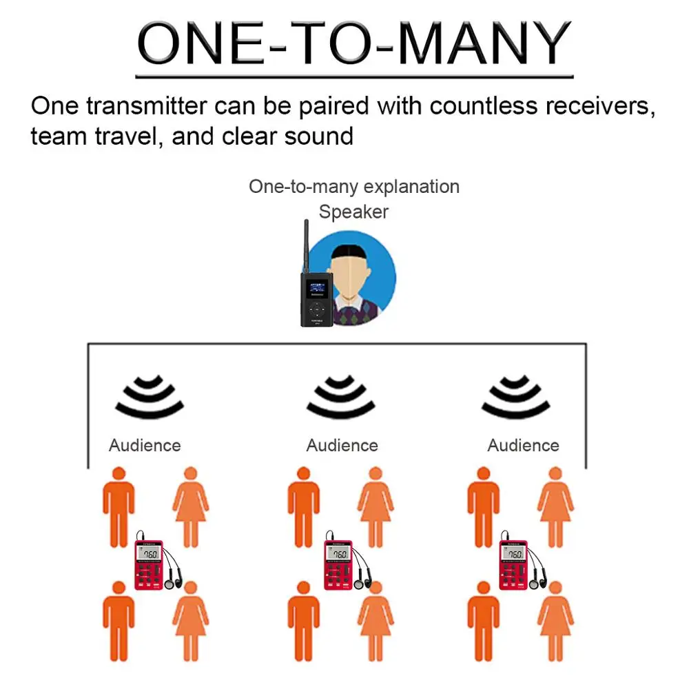 1 FM Transmitter FT11+10 FM Radio Receiver PR13 Wireless Voice Transmission System For Guiding Church Meeting Training : Click Here