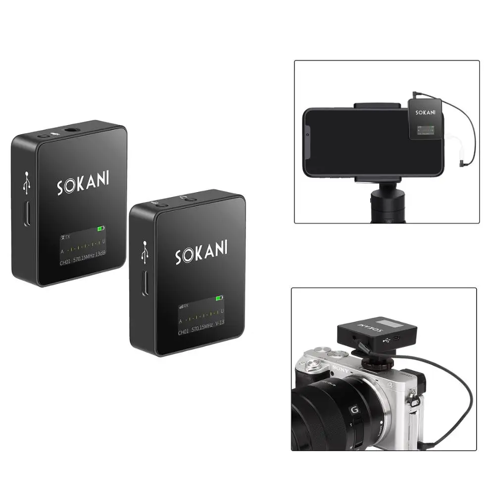 Related Products SOKANI TINY UHF Wireless Lavalier Microphone System Lapel Lav Mic for DSLR Cameras iPhone Android S