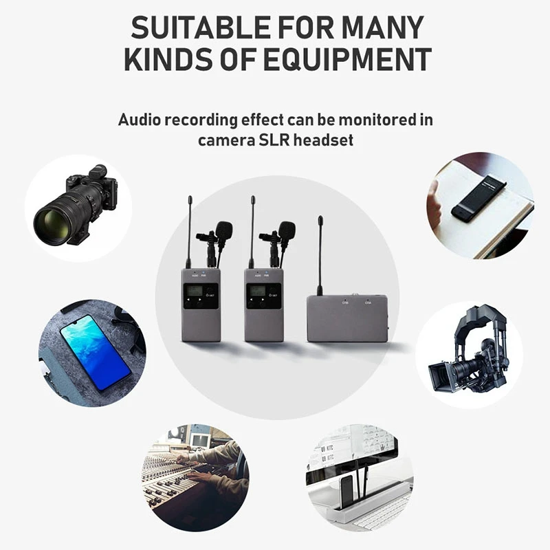 Related Products KW-M01 50-Channel UHF Professional Chargable Dual Wireless Lavalier Microphone System for Canon 5DI